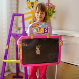 Lagana i stabilna konstrukcija s policom za pribor drži sve na dohvat ruke. Ploča je prikladna od 3 godine i pomaže razvijati kreativnost, koordinaciju oko–ruka i suradnju pri zajedničkom stvaranju. Napajanje fluorescentne funkcije osiguravaju AAA baterije.