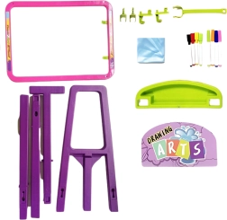 U pakiranju se nalaze 4 suhopisna flomastera, 4 fluorescentna LED flomastera, krpica za čišćenje i montažni dijelovi. Dovoljno je sastaviti i početi crtati.