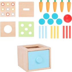 Temelji se na principu ubacivanja predmeta u odgovarajuće otvore. Jednostavna, a edukativna zabava tijekom koje djeca stječu radost i izazove. Set sadrži četiri razine težine:
