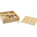 Ova sjajna igračka brenda Masterkidz pomaže djeci razvijati njihove osjetilne vještine. Set sadrži 12 drvenih blokova različitih oblika za pogađanje dodirom. Iako to djetetu u početku može biti zahtjevno, svakim pokušajem dijete će napredovati i uvježbavati svoje vještine.