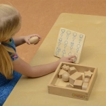 Preporučuje se koristiti set u kombinaciji s kutijom za Pogađaj dodirom (ME04055). Dostupna je i drvena ladica za odlaganje igračaka.