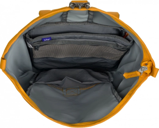 Unutra ćete pronaći pregledno organiziran prostor volumena 29 l te poseban podstavljen džep za prijenosno računalo s vlastitim bočnim ulazom na patent za brz pristup. Rolo gornji dio s kopčom omogućuje prilagodbu kapaciteta prema trenutačnim potrebama i sigurno držanje sadržaja zatvorenim.