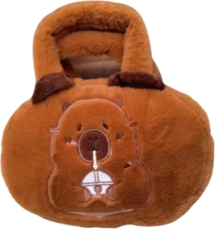 Izrađena od mekanog pliš materijala u toploj smeđoj boji, koji joj daje udoban karakter. Prednja strana ukrašena je vezom kapibare koja pije napitak, što je simpatičan motiv koji privlači pažnju. Za veću sigurnost pohranjenih predmeta, torba je opremljena zip zatvaračem, koji štiti sadržaj od nenadanog ispadanja. Ugodna i mekana ručka omogućuje ugodno nošenje u ruci, a visoka kvaliteta korištenih materijala osigurava dugotrajnost i udobnost.