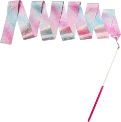 Vrpca duljine 205 cm i širine 5 cm osigurava fluidan i efektan pokret u zraku te visoku estetiku izvedbe. Izrađena je od laganog i izdržljivog materijala koji se ne zapliće i lijepo se kreće pri svakom pokretu. Ručka u obliku štapa nudi udobno korištenje zahvaljujući ergonomskom prihvatu, a okretni mehanizam na opruzi sprječava zaplitanje, što olakšava izvedbu glatkih i složenih figura.