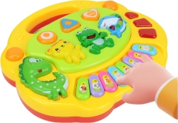 Ova šarena klavijatura nudi sjajnu zabavu za vaše dijete koje će uz pomoć nje naučiti prepoznavati glasove žabe, mačke, psa i mnogih drugih životinja, što potiče razvoj mašte i asocijativnog razmišljanja.