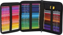 Ovaj set sadrži 72 visoko pigmentirane olovke izrađene od prirodnog drva, koje omogućuju postizanje intenzivnih boja i nježnih prijelaza tonova. Pogodne su za crtanje, koloriranje i akvarelne tehnike. Olovke su raspoređene u čvrstoj crnoj futroli s patentnim zatvaračem, koja ima zasebno mjesto za svaku olovku, čime su zaštićene od oštećenja. Futrola je kompaktna i lako prenosiva, idealna za dom i putovanja.