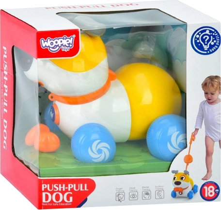 Koristite kao gurajuću igračku s dugačkom šipkom ili kao vučnog psića na povodcu. Odlično za razvoj hoda i koordinacije.