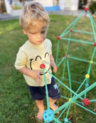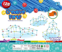 Set je idealan za razvoj kreativnih vještina vašeg djeteta. Sadrži ukupno 128 elemenata koji omogućuju izradu različitih prostorných konstrukcija, uključujući šator.