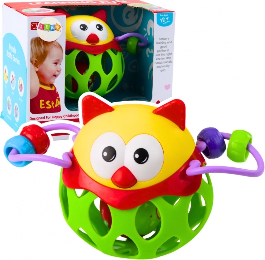 Zvečka u obliku zelene sove idealni je izbor za razvoj koordinacije vida i pokreta kod najmlađe djece. Unutrašnjost sove skriva malu lopticu koja pri kretanju ispušta ugodne zvukove, stimulirajući sluh i privlačeći djetetovu pozornost.