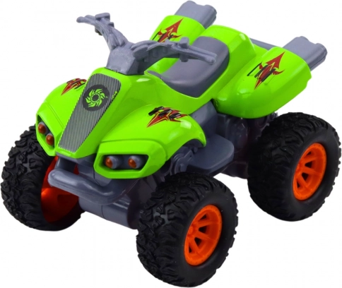 Quad s pogonom je dinamična terenska igračka koja će oduševiti svakog malog entuzijasta brze vožnje. Gumeni kotači i čvrsta metalna karoserija daju quadu realistično ponašanje pri kretanju, s mogućnošću vožnje i u kući i na otvorenom.