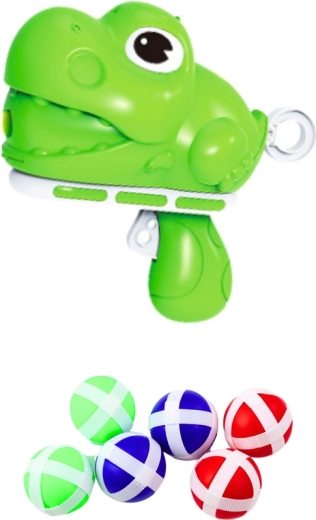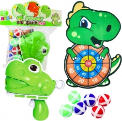 U kompletu se nalazi pištolj u obliku dinosaura koji zahvaljujući opružnom mehanizmu omogućuje brzo napinjanje i pucanj. Na taj način igrač uči planiranje redoslijeda poteza i preciznost, što povećava njegove vještine. Igra sadrži šest mekanih, sigurnih loptica s ljepljivim elementima koje čvrsto prianjaju na površinu mete i minimaliziraju rizik od gubitka dijelova.