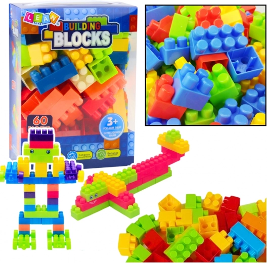 Ovaj set pruža neograničene mogućnosti stvaranja zahvaljujući raznolikosti oblika i veličina. Od kockica djeca mogu oblikovati brojeve, likove, životinje i vozila, što potiče razvoj manualnih vještina i mašte kroz igru i učenje.