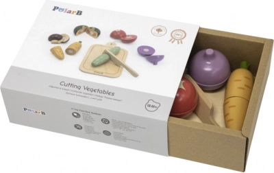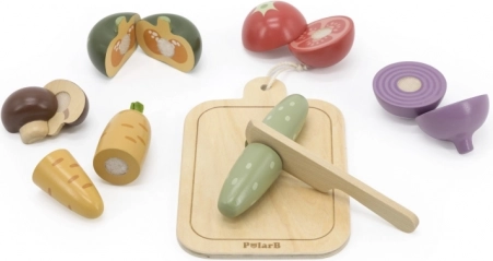 Pružite svojoj djeci kreativnu igru s ovom drvenom garniturom za rezanje povrća! Svaki komad povrća je podijeljen i spojen čičkom, što omogućuje jednostavno razdvajanje i ponovno spajanje. Time djeca vježbaju koordinaciju ruku i uče više o povrću.