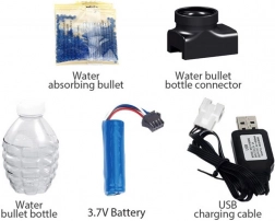 U pakiranju se nalazi blaster, spremnik, zaštitne naočale, punjiva baterija i USB kabel. Dovoljno je hidratizirati kuglice i možete igrati.