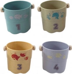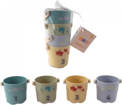 Set Ziro kantica s motivom morskog svijeta idealna je igračka za kupanje za najmlađe. Djeca s njima mogu zahvaćati, prelijevati i cijediti vodu, što prirodno razvija njihovo osjetilno doživljavanje i finu motoriku. Zahvaljujući raznobojnim nijansama i označavanju, ujedno je i zabavno pomagalo za učenje boja i brojeva.