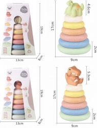 Mekani prsteni za slaganje ZIRO – dino idealan su izbor za malu djecu koja otkrivaju svijet oblika, boja i slaganja. Zahvaljujući ugodnom mekom materijalu, prsteni dobro leže u ruci i prikladni su i za malene dječje ručice. Djeca vježbaju koordinaciju oko–ruka i uče slagati prstene prema veličini ili boji.