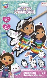 Otkrijte zabavan kreativni set uz koji djeca lako stvaraju šarene magnete s motivima iz Gabininog čarobnog kućice. Dovoljno je uzeti priloženo izgrebno pero, sastrugati crni sloj i pustiti da zasjaju dugine boje. Pakiranje sadrži 10 sličica s magnetima za trenutačno pričvršćivanje na hladnjak ili magnetsku ploču.