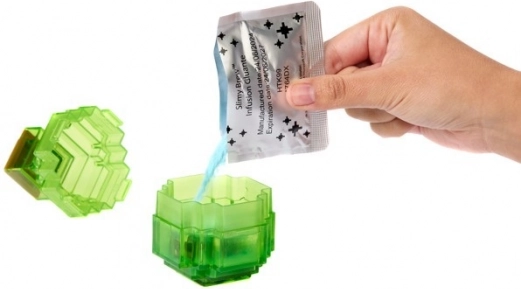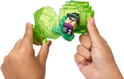 Događaji u kolekciji Minecraft Mini Mode Potion Brewing puni su uzbuđenja i iznenađenja. Otvorite svaki prekrasan spremnik za eliksir i unutra ćete pronaći mini figuricu i paketić čestica Slimy Brew Potion. Dodajte ih u spremnik zajedno s vodom (nije uključena) i dobro protresite kako biste otkrili čaroliju napitka. Boja i izgled vaše figurice transformiraju se zahvaljujući mehanizmu Color Reveal, što donosi potpuno novi izgled.