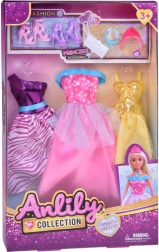 Set modnih odjeća ANLILY je savršen za djecu koja vole stil i dizajn. Sadrži tri različite haljine - svaka s jedinstvenim krojem i bojom, dva elegantna para cipela na petu, stilsku torbu, plavu ogrlicu i nježnu krunu, koja je idealna za svaku malu princezu.