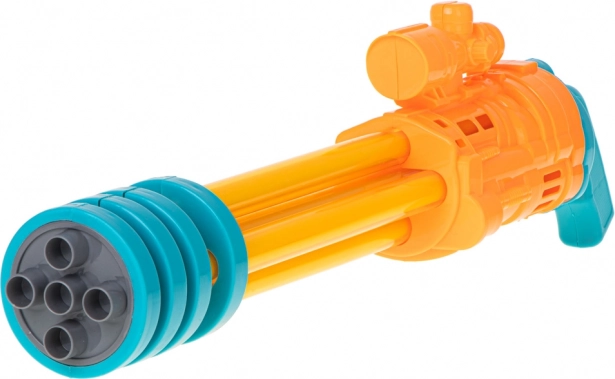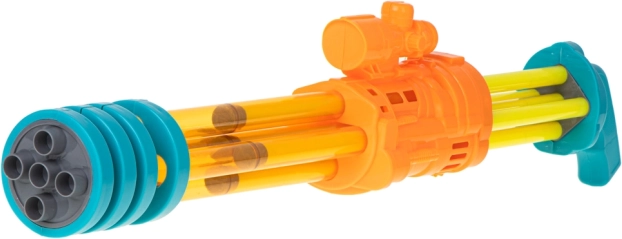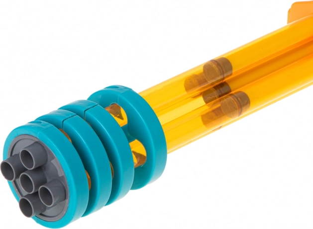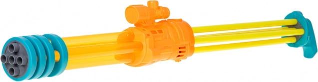 Izrađen od kvalitetne plastike, ovaj pištolj je lagan, ali izdržljiv. Žive boje poput žute, narančaste i plave privlače pažnju svakog djeteta.