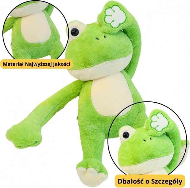 Plišana žaba je zabavna i kreativna igračka koja osvaja svojim vedrim izgledom i funkcionalnošću. Sadrži magnete u šapicama i očima koji omogućuju žabi prekrivati oči i igrati se “kuk”, što je savršeno za kreativnu igru koja razvija maštu i vještine djece. Klasična zelena boja s jasnim trbuščićem, velike oči i prijateljski osmijeh čine žabicu odmah omiljenom među najmlađima.