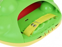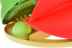 - Sa strane katapulta nalazi se bijeli zatvarač – povucite ga za otvaranje usta žabe i umetanje loptice.