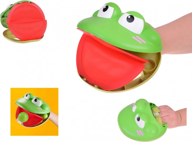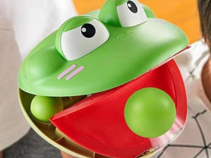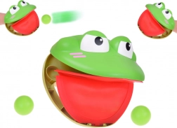 - Umetnite jednu lopticu u usta žabe, kao da je na jeziku.