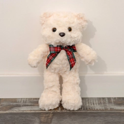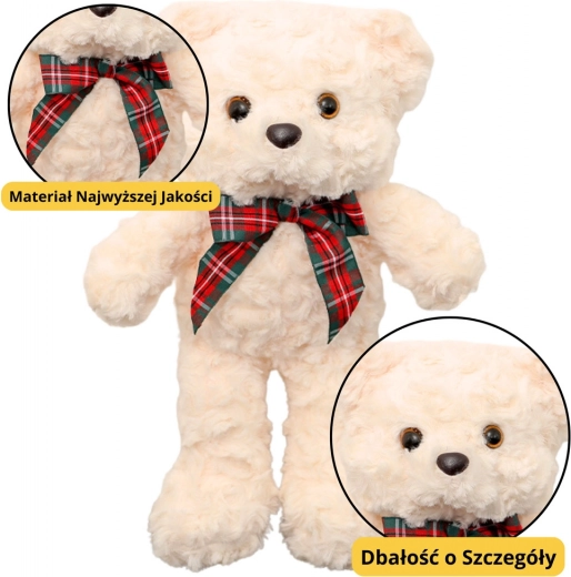 Ukrasna mašna u klasičnom škotskom tartanu predstavlja elegantan naglasak koji medi daje svečani i poklon-karakter. Medo ima stabilan, stojeći stav i izvrsno pristaje kao pratitelj za igru, mazilica za spavanje ili dekorativni element u dječjoj sobi.