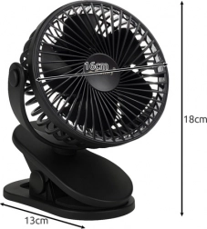 Ruhhy bežični stolni ventilator s USB-C i kopčom - crni