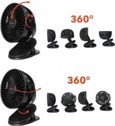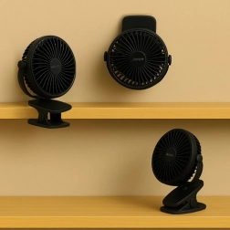 Zahvaljujući snažnoj kopči i protukliznoj podlozi, ventilator ostaje sigurno na svom mjestu, bez obzira gdje ga pričvrstili.