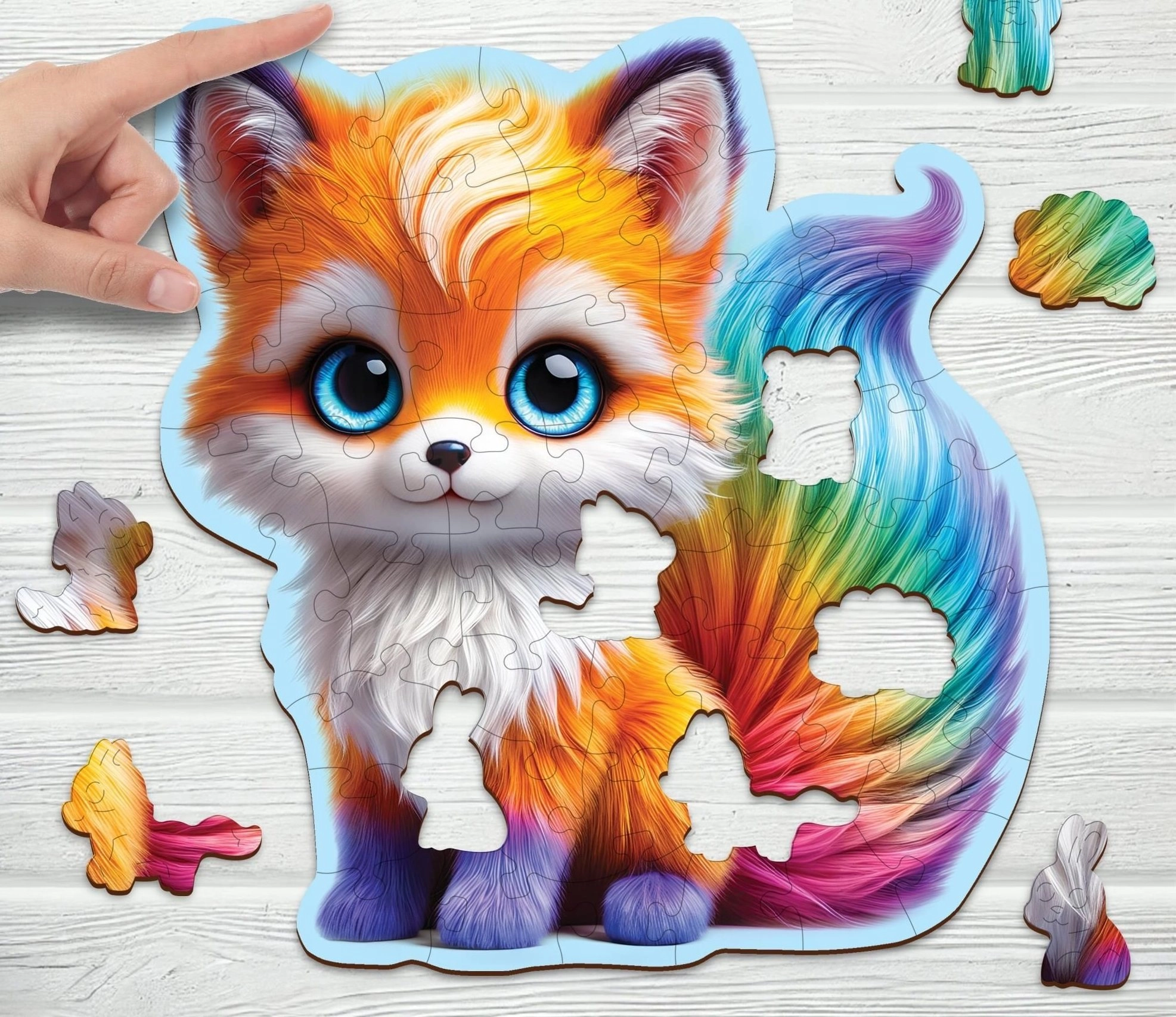 Drvene puzzle Slatka lisica brenda Wooden City izrađene su od kvalitetnih HDF ploča od drvenih vlakana debljine 3–4 mm, a dijelovi su precizno laserski izrezani za glatke rubove bez iverja. Sastavljanje ovih puzzli doista je zabavan izazov zahvaljujući jedinstveno oblikovanim dijelovima, od kojih neki oponašaju oblike životinja i mogu stajati kao samostalne figurice.