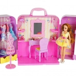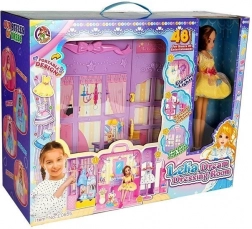 Ovaj univerzalni set za igru osmišljen je kako bi djeci pružio radost i inspiraciju. Velika garderoba obogaćena osvijetljenim elementima nudi autentično iskustvo koje djeci omogućuje uroniti u svijet mode i ljepote. Lutka visine 26 cm ima na raspolaganju čitav niz dodataka za modni nastup: cipele s potpeticom, torbicu, dijadem, ogrlicu, vješalice za odjeću, stalak za haljine i mnogo toga.