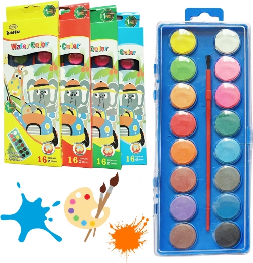 Set školskih akvarelnih boja savršen je za djecu koja tek uče slikati, kao i za one koji već razvijaju svoje umjetničke vještine. Ovo pakiranje sadrži 16 intenzivnih boja koje možete udobno koristiti zahvaljujući plastičnoj paleti s prozirnim poklopcem.