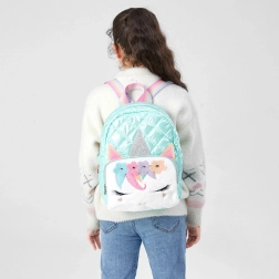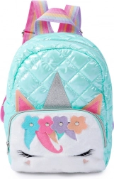 Model je izrađen od izdržljivog, a pritom laganog materijala koji je otporan na svakodnevnu upotrebu. Na prednjoj strani nalazi se mekana aplikacija s motivom jednoroga, uključujući izbočene uši i rog, što mu daje poseban, jedinstven izgled. Ruksak sadrži glavnu prostranu komoru, jedan manji unutarnji džep i dodatni vanjski džep na patentni zatvarač.