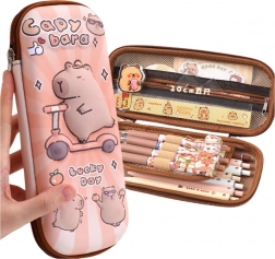 Ova prostrana pernica izrađena je od izdržljivog i lako čistivog materijala. Sadrži glavnu komoru s mrežastim pregradama koje mogu primiti kemijske, olovke, bojice, markere i ostale školske sitnice. Patentni zatvarač omogućuje brz pristup sadržaju i štiti ga od gubitka.