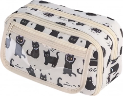 Pernica sa zabavnim motivom crnih mačaka ima glavnu prostranu komoru i dodatne unutarnje pregrade koje omogućuju organizirano spremanje svih školskih potrepština.
