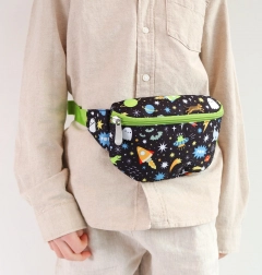 Ova tamno plava torbica za struk sa svemirskim printom ne samo da donosi radost, već i dodatnu praktičnost. S dovoljno velikim prednjim pretincem za novčanik i mobitel te stražnjim džepom na patent za sitne vrijednosti, ova je torbica idealna za svakodnevne pustolovine.