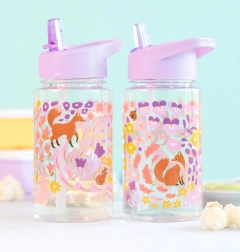 Ova prozirna dječja boca za piće savršena je za svakodnevnu upotrebu. S prekrasnim tiskom životinjica u cvjetnom vrtu razveselit će svako dijete i istovremeno upotpuniti dojam seta koji možete sastaviti – boca za piće, ruksak i kutija za užinu.