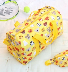 Prostrana i praktična dječja putna torba s veselim životinjskim uzorkom. Idealna za sport ili izlete, s mogućnošću nošenja u ruci ili preko ramena.