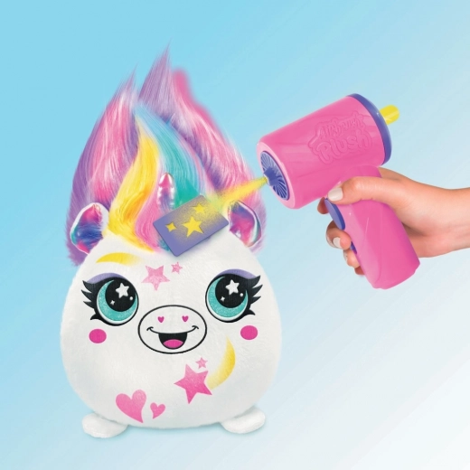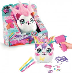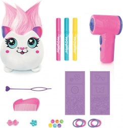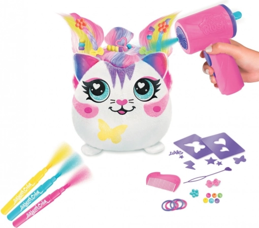 U ovom jedinstvenom setu pronaći ćete plišanca s kosom, baterijski airbrush alat, tri flomastera i trideset šablona za neograničene mogućnosti ukrašavanja. Nakon pranja prema uputama možete početi iznova i stvoriti novi dizajn.