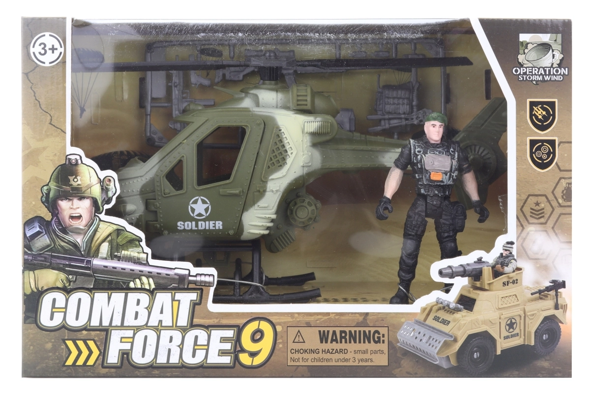 Otkrijte svijet vojnih avantura s ovim vojnim setom koji sadrži helikopter veličine približno 22 x 13 cm. Uz njega dolaze vojnik i razno oružje za dodatnu akcijsku zabavu.