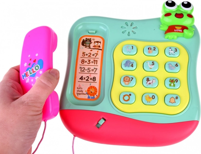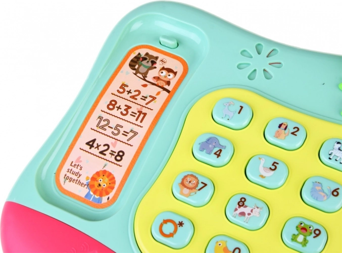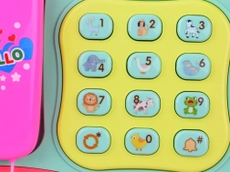 Pogledajte ovaj šareni glazbeni telefon za djecu koji pruža mnogo zabave i edukativnih funkcija. Svaka tipka na telefonu ne samo da reproducira različite melodije i zvukove, već je također označena slikama životinja i brojevima na engleskom jeziku. Nakon podizanja slušalice oglasit će se zvuk zvonećeg telefona s uvodnom melodijom, dok se pri odlaganju čuje karakterističan zvuk spuštanja slušalice.