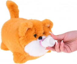 U pakiranju se nalazi i mala bočica koju možete prisloniti uz njuškicu psića i pretvarati se da ga hranite. Tom prilikom čut ćete veselo mljackanje, koje oponaša zvukove uživanja u omiljenoj psećoj poslastici.