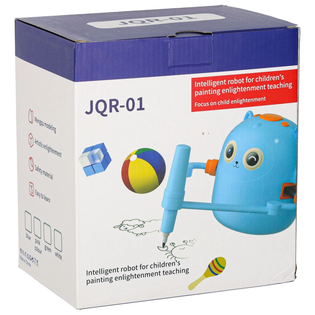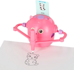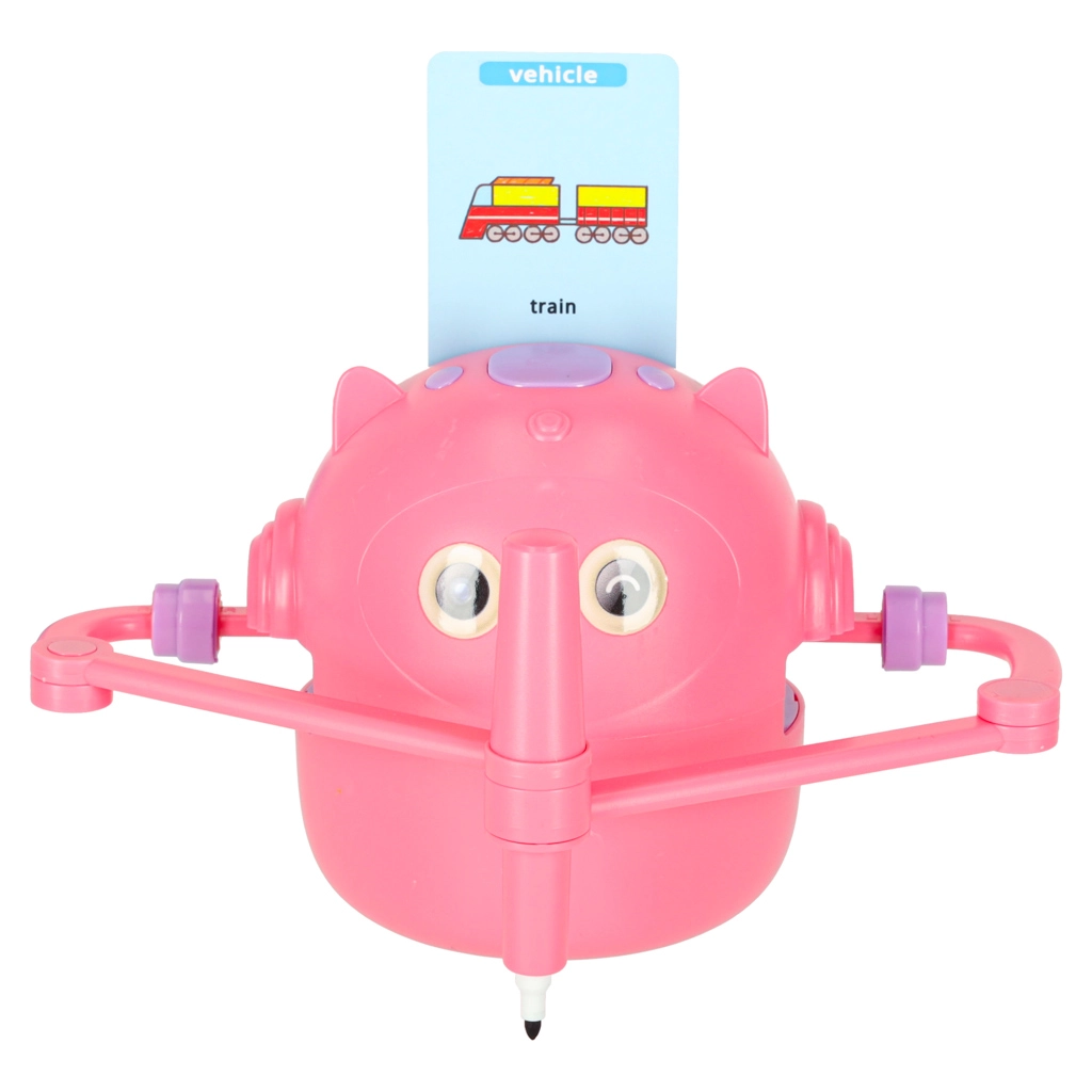 Odabrali smo jednostavnost i radost učenja. Dovoljno je umetnuti karticu sa slikom, učvrstiti flomaster u robotsku ruku i promatrati kako nastaje crtež korak po korak. Dijete zatim može obojati ilustraciju i vježbati finu motoriku, strpljenje i koncentraciju. Interaktivne glasovne upute na engleskom prirodno proširuju rječnik.