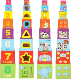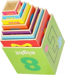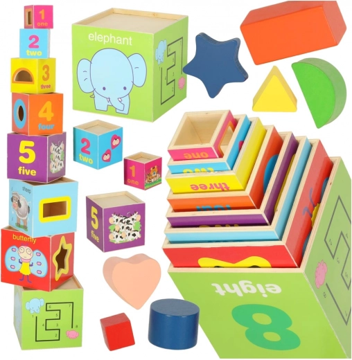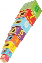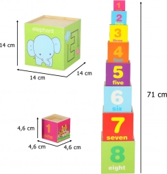 Ovaj set sadrži 8 šarenih drvenih kocaka koje se mogu slagati jedna na drugu i stvoriti kulu visoku čak 71 cm! Svaka kocka ima 8 aktivnih edukativnih strana, koje nude različite mogućnosti igre i učenja.