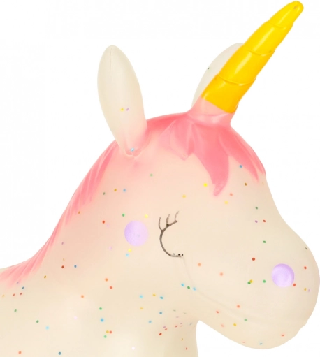 Izrađen od elastične i izdržljive gume, skakajući jednorog je mekan i fleksibilan, s certificiranom sigurnošću.