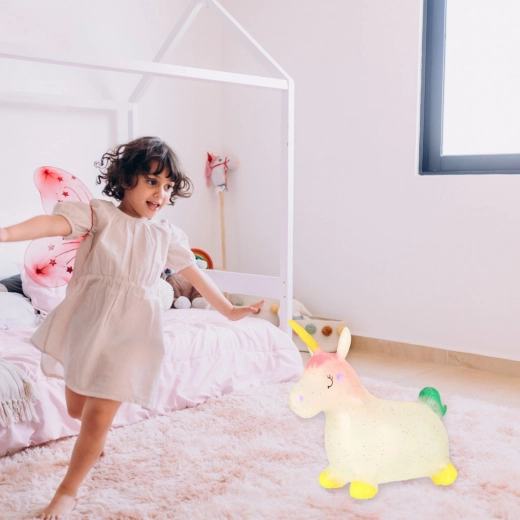 Tražite igračku koja će ne samo razveseliti vaše dijete, već i poticati njegov motorički razvoj i koordinaciju? Gumeni skakajući jednorog savršen je izbor za energičnu i razigranu djecu! Ova igračka u obliku bajkovitog jednoroga postat će najbolji pratitelj dječjih pustolovina i kod kuće i na otvorenom.
