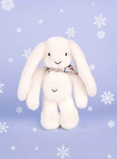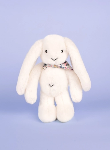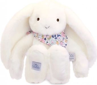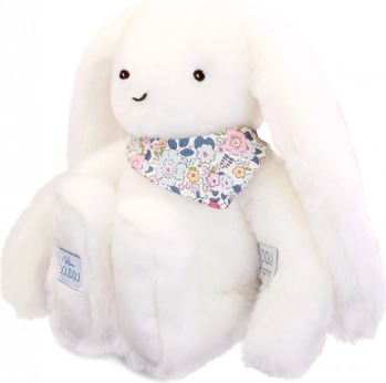 Mekani bijeli zeko s cvjetnom maramom idealan je pratitelj za bebu od rođenja. Njegova mekoća i nježnost donose osjećaj udobnosti i sigurnosti.