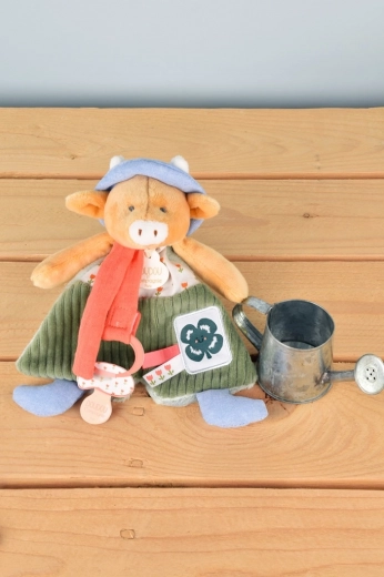 Ova plišana kravica Aneth idealan je dar za svaku priliku. Odjevena u zelenu manšestarsku odjeću s cvjetnim ovratnikom, dio je kolekcije igračaka Moj vrt, inspirirane prirodom. Igračke iz ove kolekcije pakirane su u prekrasne poklon-kutije ilustrirane akvarelom, koje podsjećaju na raznolikost i boje vrta, što dodatno naglašavaju njihova imena poput Ciboulette i Aneth.