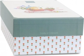 Kravica je odjevena u zeleno rebrasto odijelce s cvjetnim ovratnikom, mami na igru te pruža utjehu i umirenje. Zapakirana je u elegantnu poklon-kutiju prikladnu za čuvanje uspomena, poput fotografija i drugih sitnica na rođenje bebe. Poklon-kutija sadrži i dvije kratke pričice za zadovoljstvo.